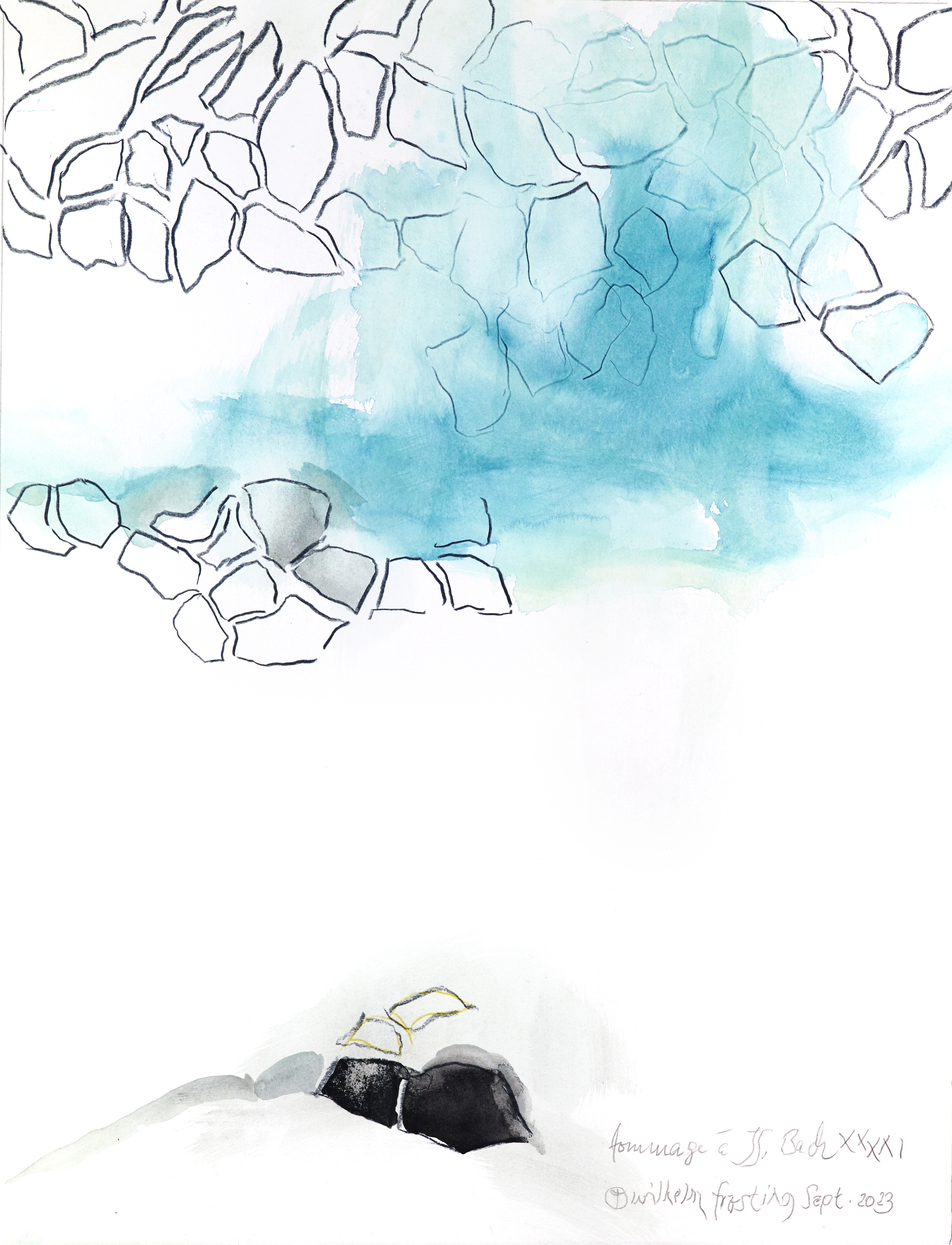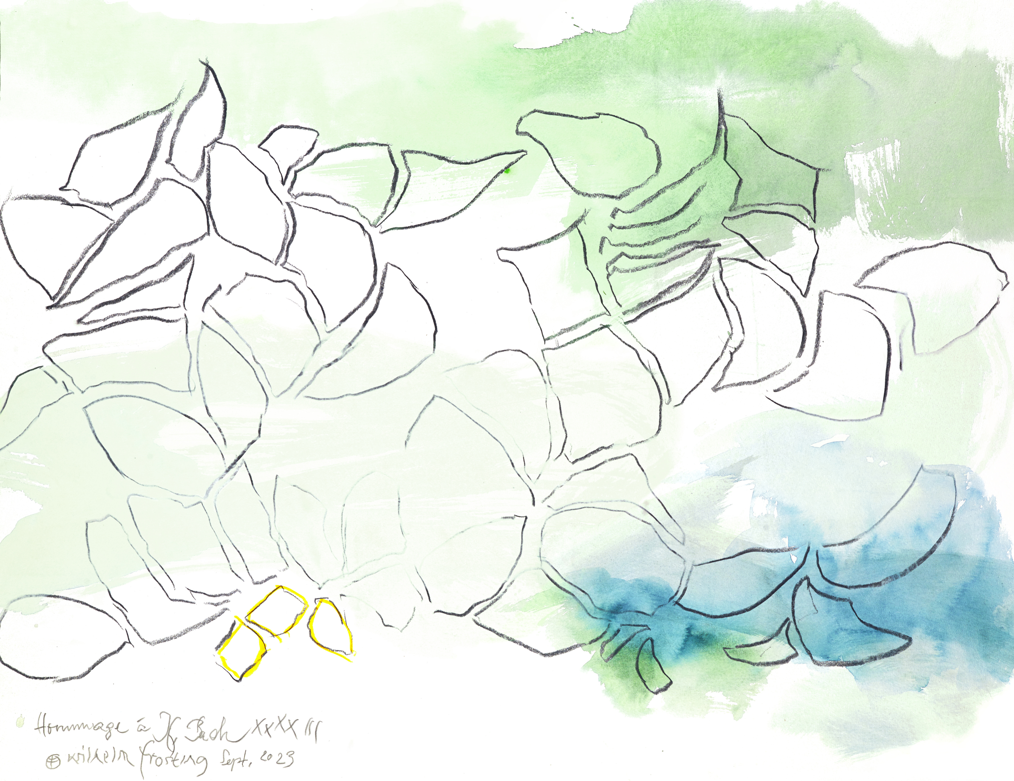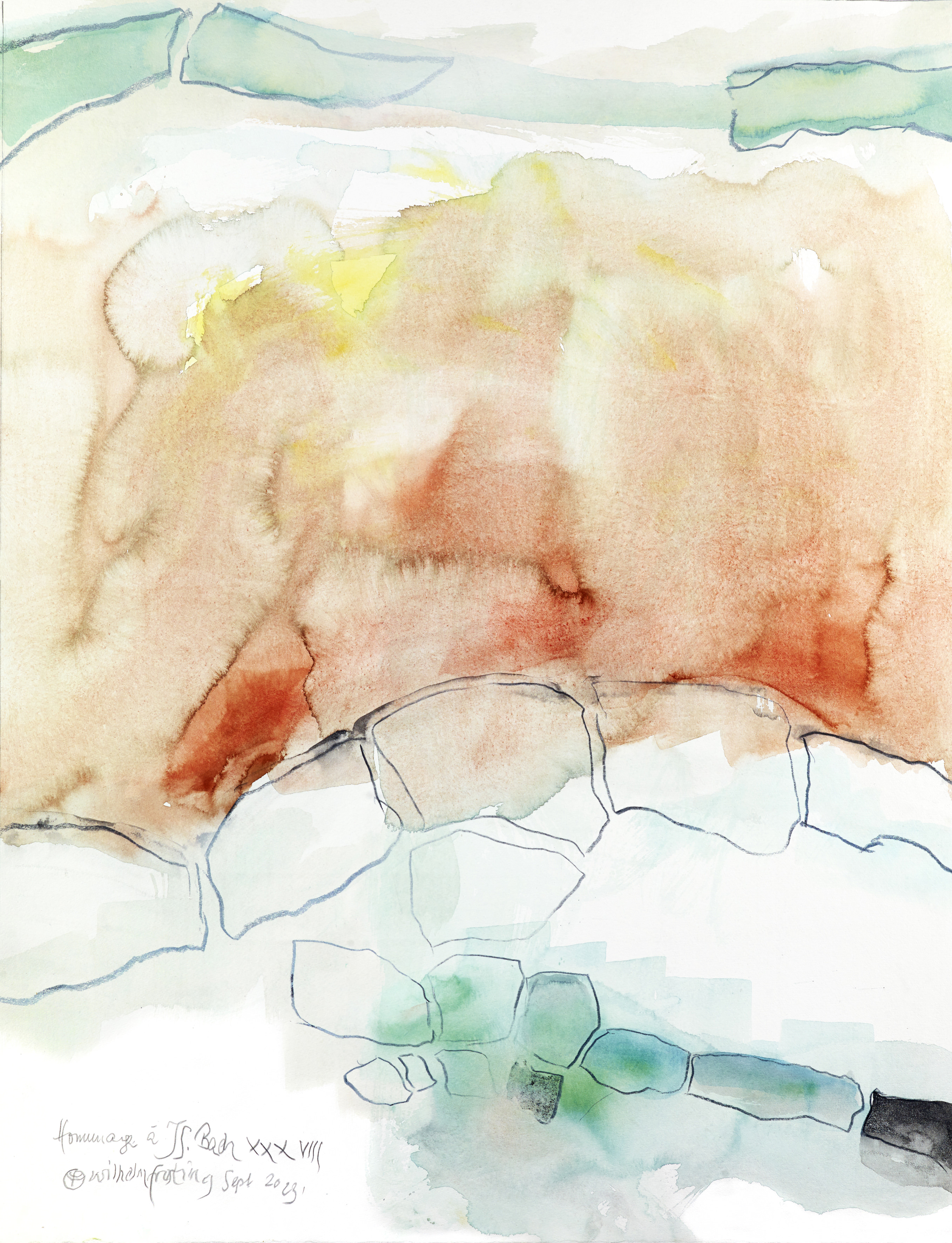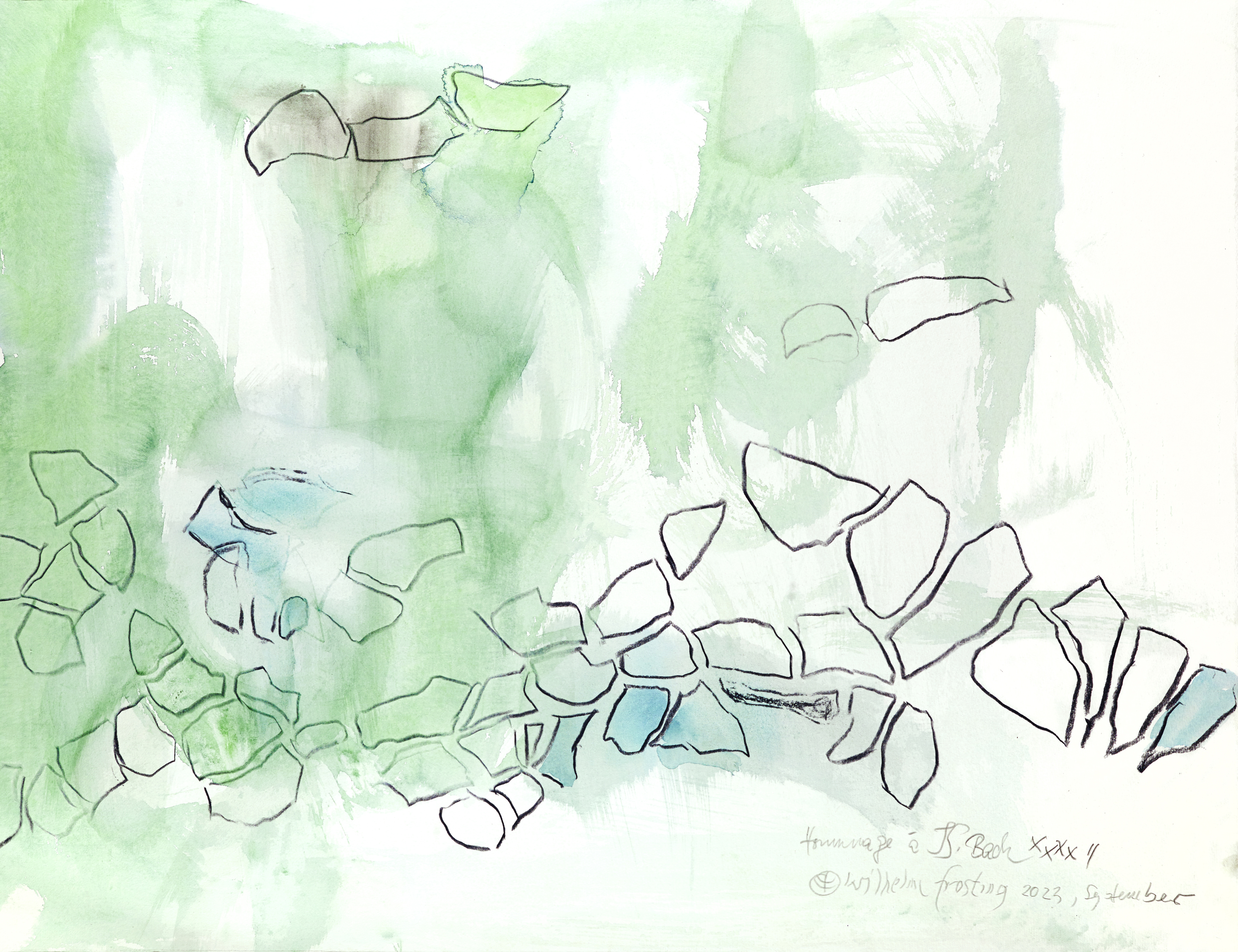 Durch lebenslange Betrachtung der Natur fand Wilhelm Frosting eine einfache Geste, die ihm ermöglicht, alles auszudrücken, was die Natur bewegt. Bewegung schafft Neues, eruptive Kräfte zerstören Bestehendes, während aus dem Verbleibenden neue Fruchtbarkeit entsteht.