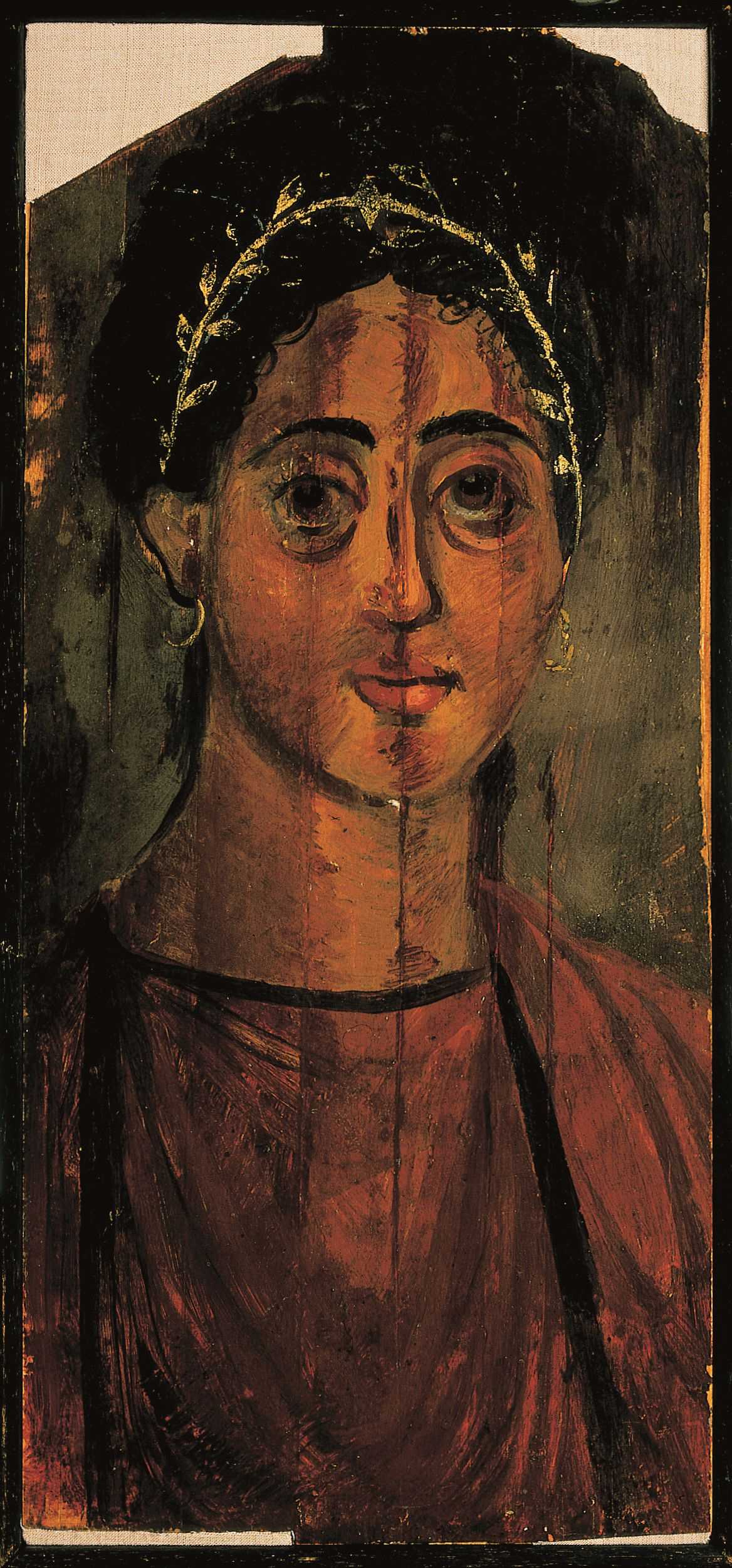 Mumienportrait einer Frau, Röm. Kaiserzeit, Kaiser Trajan, um 100–110 n. Chr., Ägypten, Fayum (?) Enkaustik auf Holz 42,5 × 19,5 cm, © Gustav-Lübcke-Museum Hamm/Thorsten Hübner