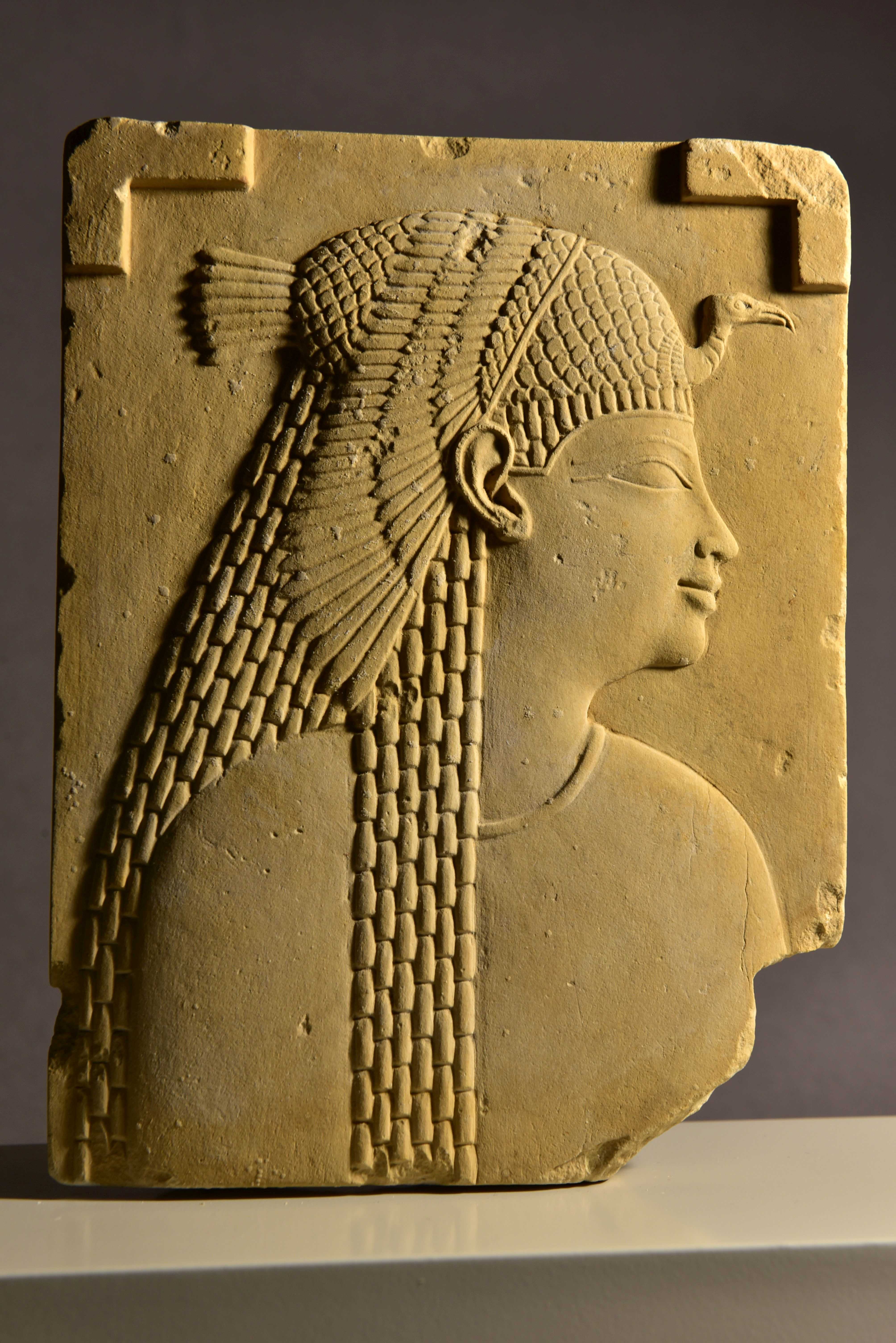 Bildhauerstudie mit Königinnenbüste und Apis-Stier, Frühe Ptolemäerzeit, ca. 300-200 v. Chr., Ägypten, Kalkstein 17 x 12,9 x 1,75 cm, © Gustav-Lübcke-Museum Hamm