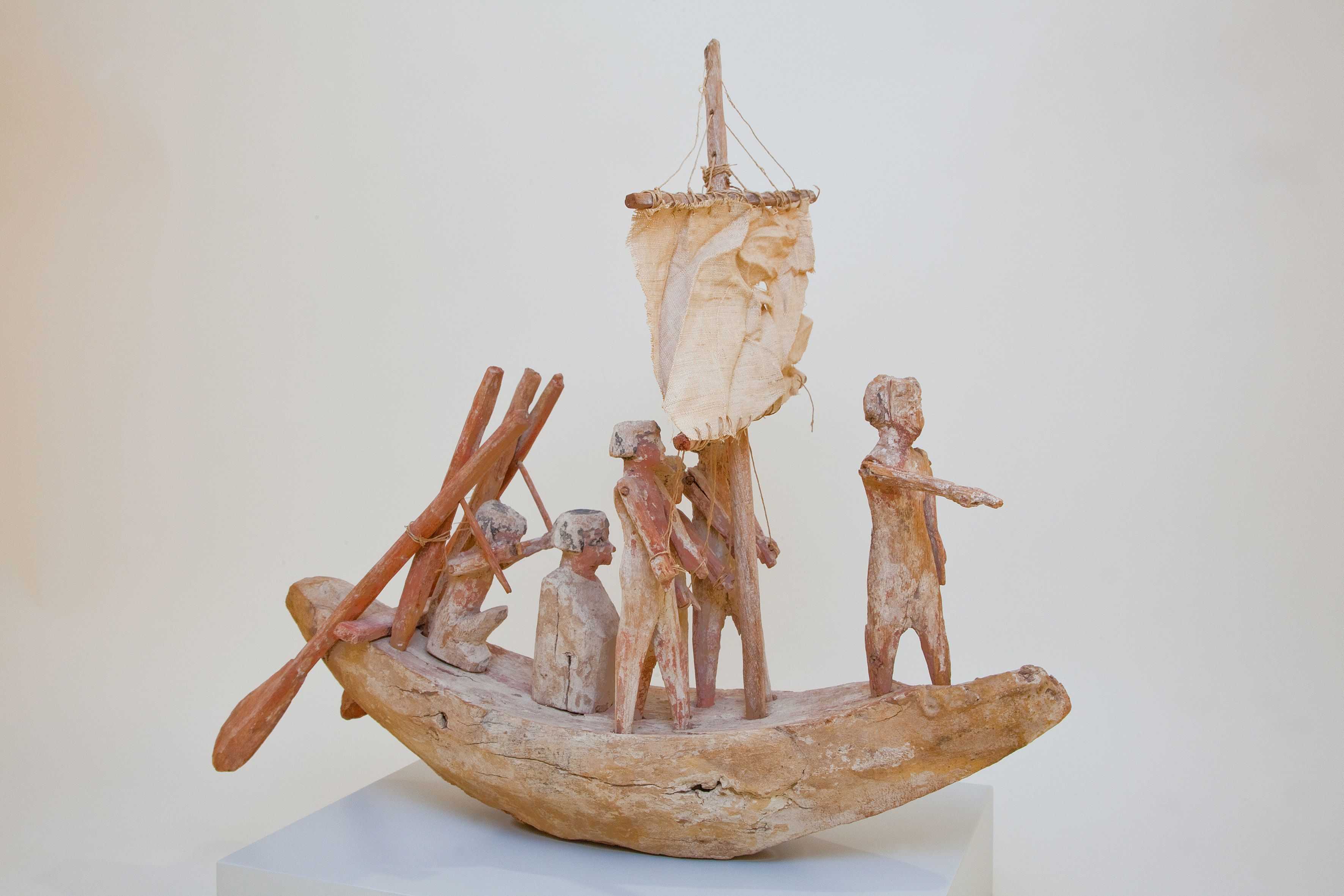 Schiffmodell, Mittleres Reich, 11. Dyn., 2119–1976 v. Chr. Ägypten Holz, stuckiert, bemalt; Leinen 47,5 × 12,5 × 51,0 cm, © Gustav-Lübcke-Museum Hamm/Thorsten Hübner