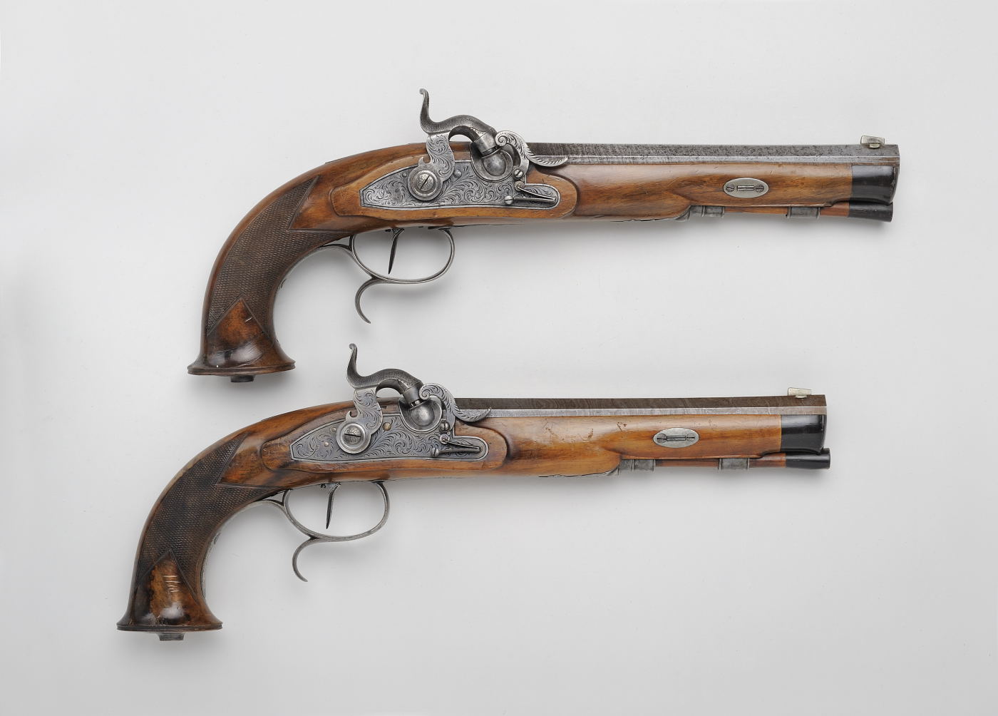 Perkussionsscheibenpistole, Deutschland, um 1850 Eisen, Messing, Buche Büchsenmacher: V. Ditzel, tätig in Zella St Blasii/Sachsen Länge: 44 cm, © Heinz Feußner, Hamm