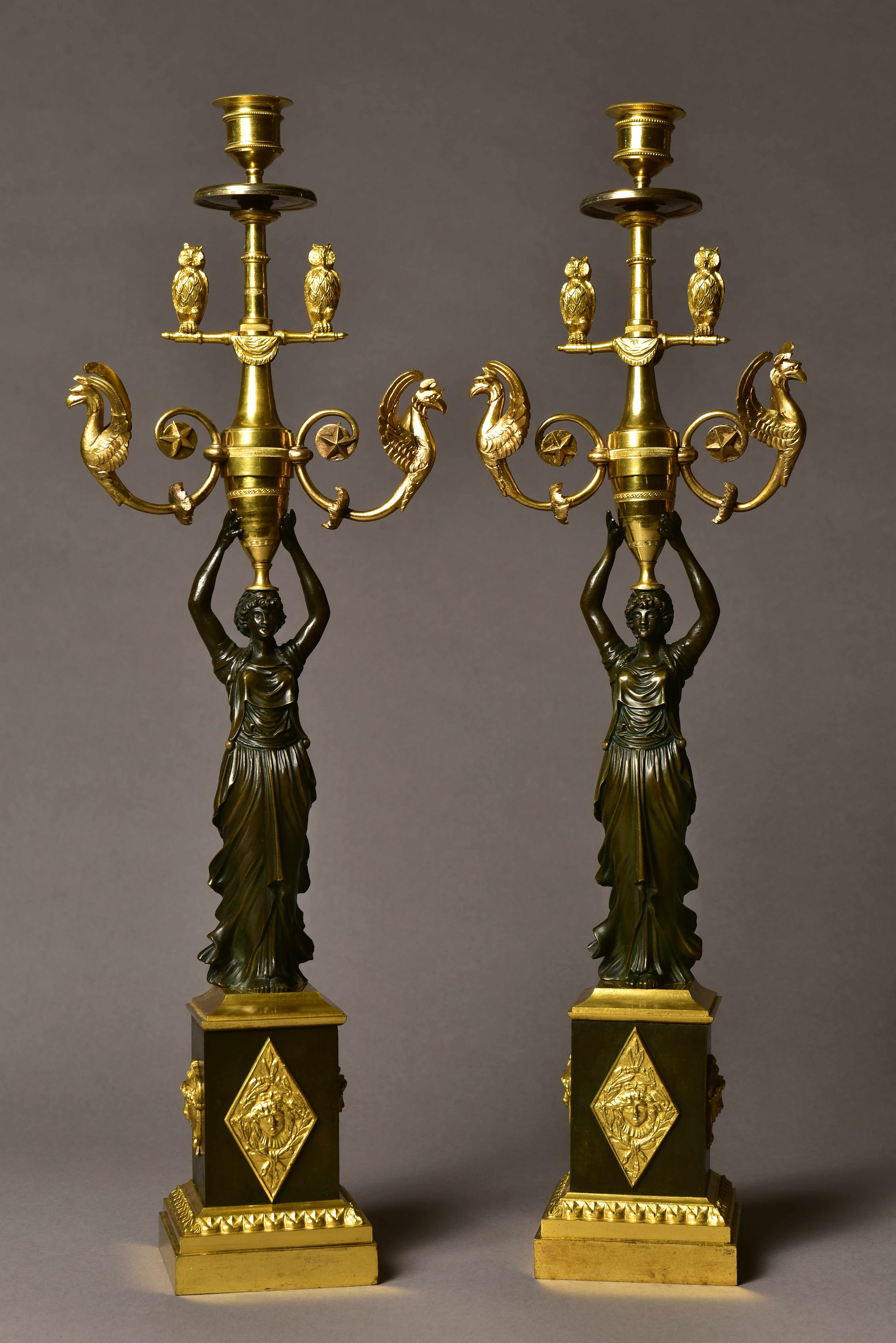 Paar Kandelaber, Paris, um 1800 Messing, bronziert, feuervergoldet Höhe: 55 cm, © Gustav-Lübcke-Museum Hamm