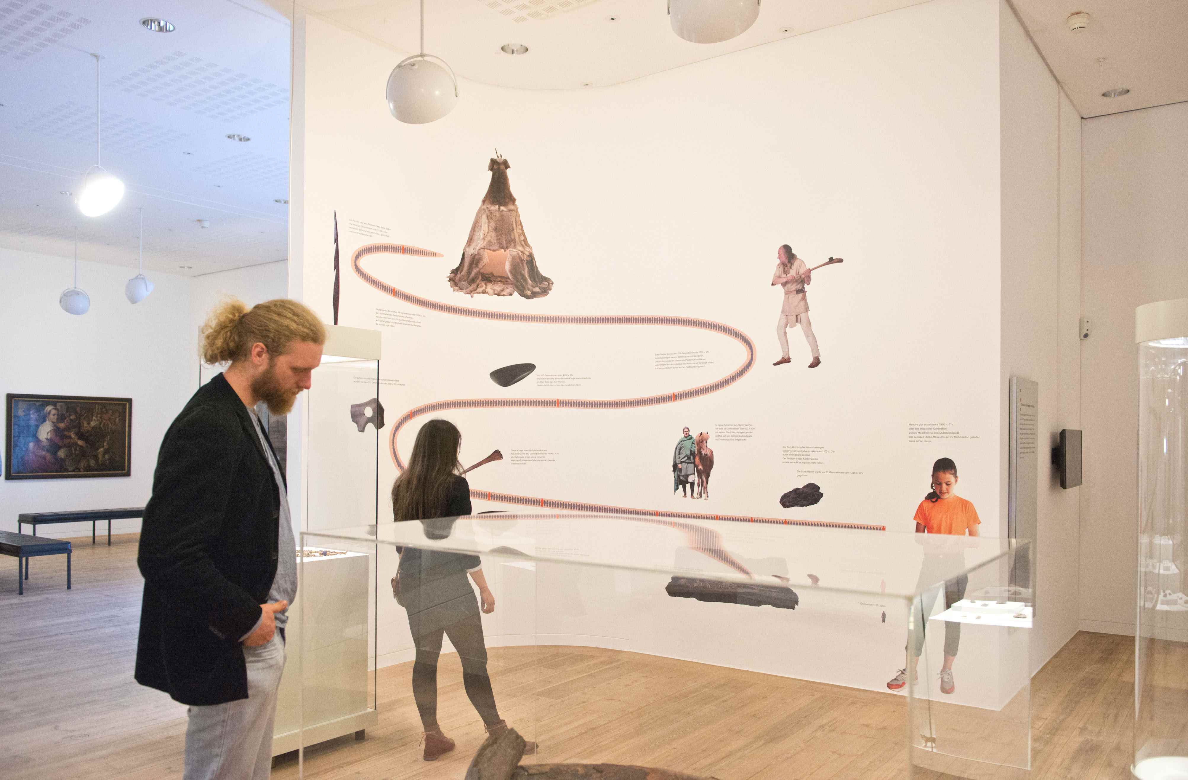 Vielfach gelingt es, die Lebensumstände der Menschen früherer Zeiten aufzuzeigen. Den ausgestellten Objekten werden an einigen Stellen moderne Pendants zur Seite gestellt, um Parallelen in unserer Lebenswelt anschaulich zu machen. Ein in seiner Funktion ungeklärtes Geweihobjekt, Urnenbestattungen der Bronze- und Eisenzeit oder die beigabenlose Baumsargbestattung zu Beginn des Mittelalters ermöglichen eine behutsame Annäherung an die geistige Welt unserer Vorfahren.