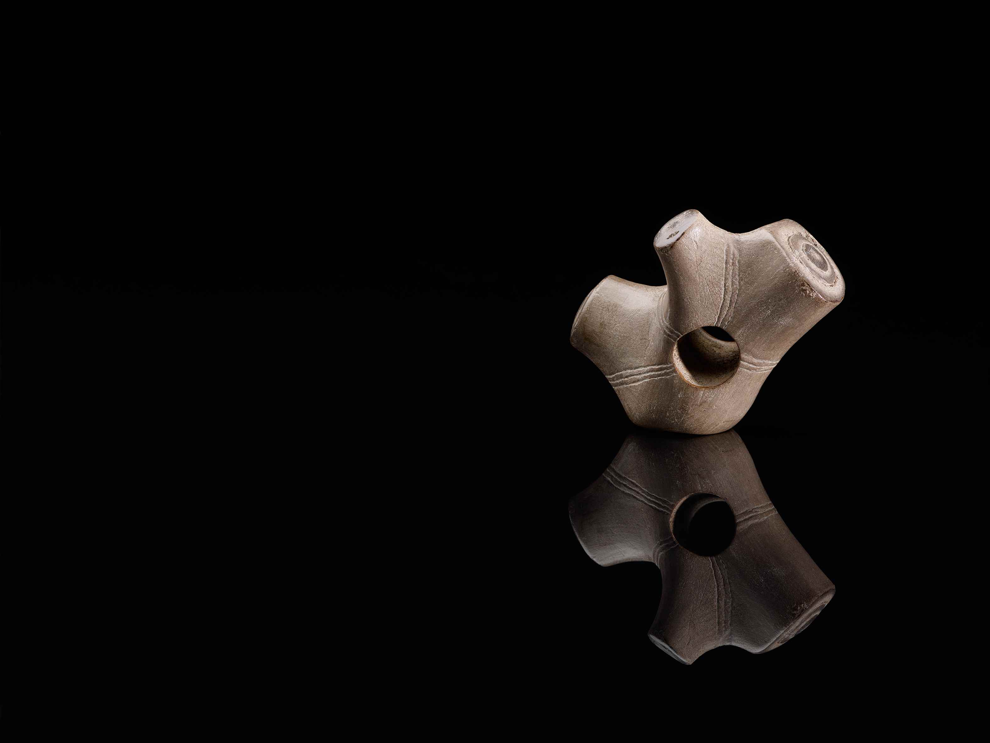 Verziertes Gerät aus Hirschgeweih, 3070 – 3020 v. Chr., Spätneolithikum, Trichterbecher-/ Wartburgkultur, Import aus Mitteldeutschland? Fundort: Lünen-Lippolthausen, bei Schloß Buddenburg an der Lippe D: 3,5cm, 8,9 – 9,5cm x 11,5cm, Inv. Nr. 4624, © Stefan Brentführer, LWL Archäologie für Westfalen