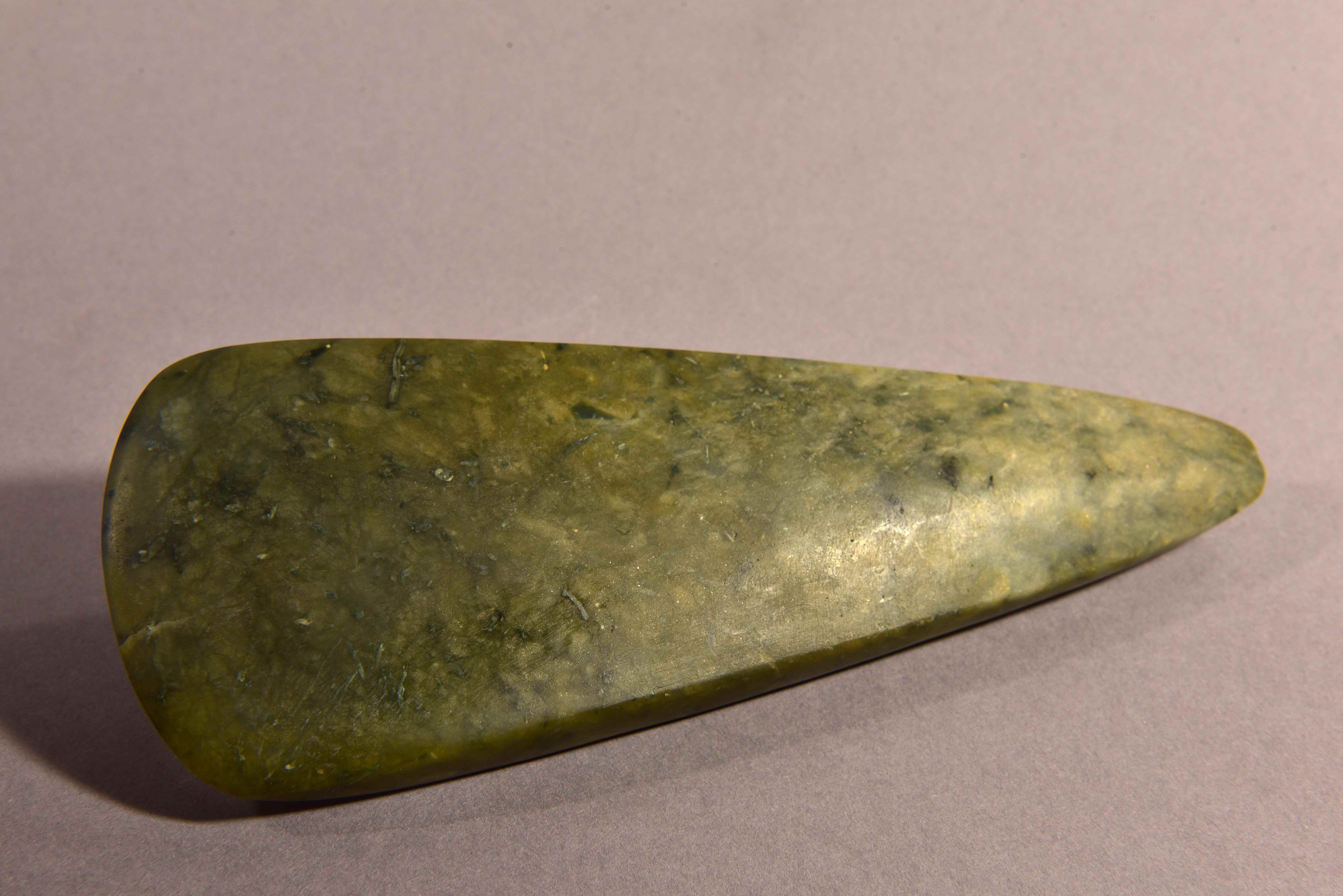 Jadeitbeil, Jadeit, um 4000 v. Chr., Jungneolithikum, Michelsberger Kultur, Fundort: Grevenbroich, 4,5 x 14,5cm, Inv. Nr. 825, © Gustav-Lübcke-Museum Hamm