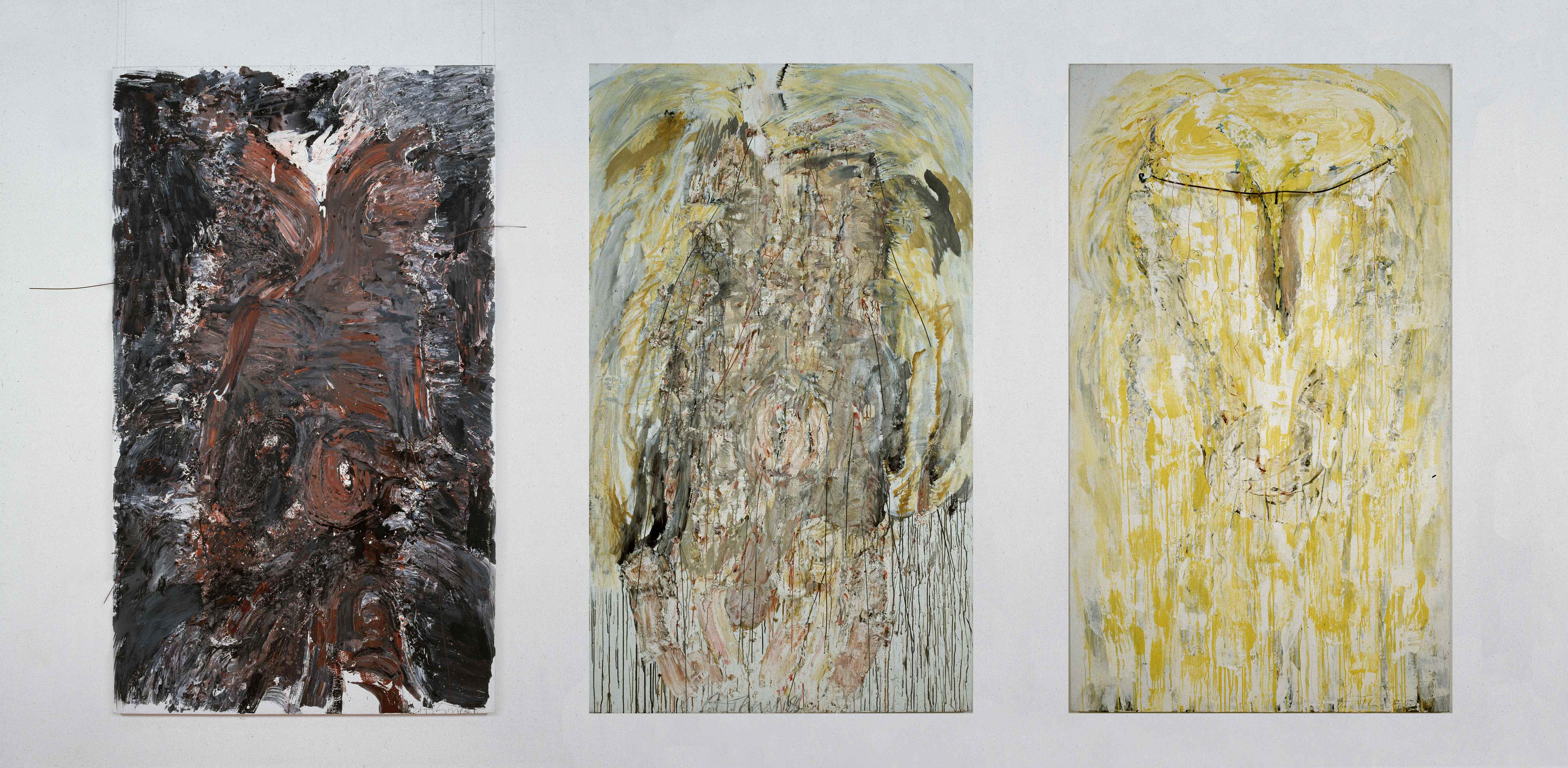 Gerhard Hoehme (1920-1989), Sebastianlegende, 1986/87, Triptychon, Acryl auf Leinen, Assemblage, je 240 x 140 cm, © Heinz Feußner, Hamm